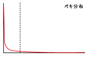 起業・ベンチャー投資は正規分布ではなく、べき分布(極端な値をとるサンプルの数が正規分布より多く、そのために大きな値の方向に向かって曲線は長くて、なだらかにすそ野を伸ばす手特性がある)である。